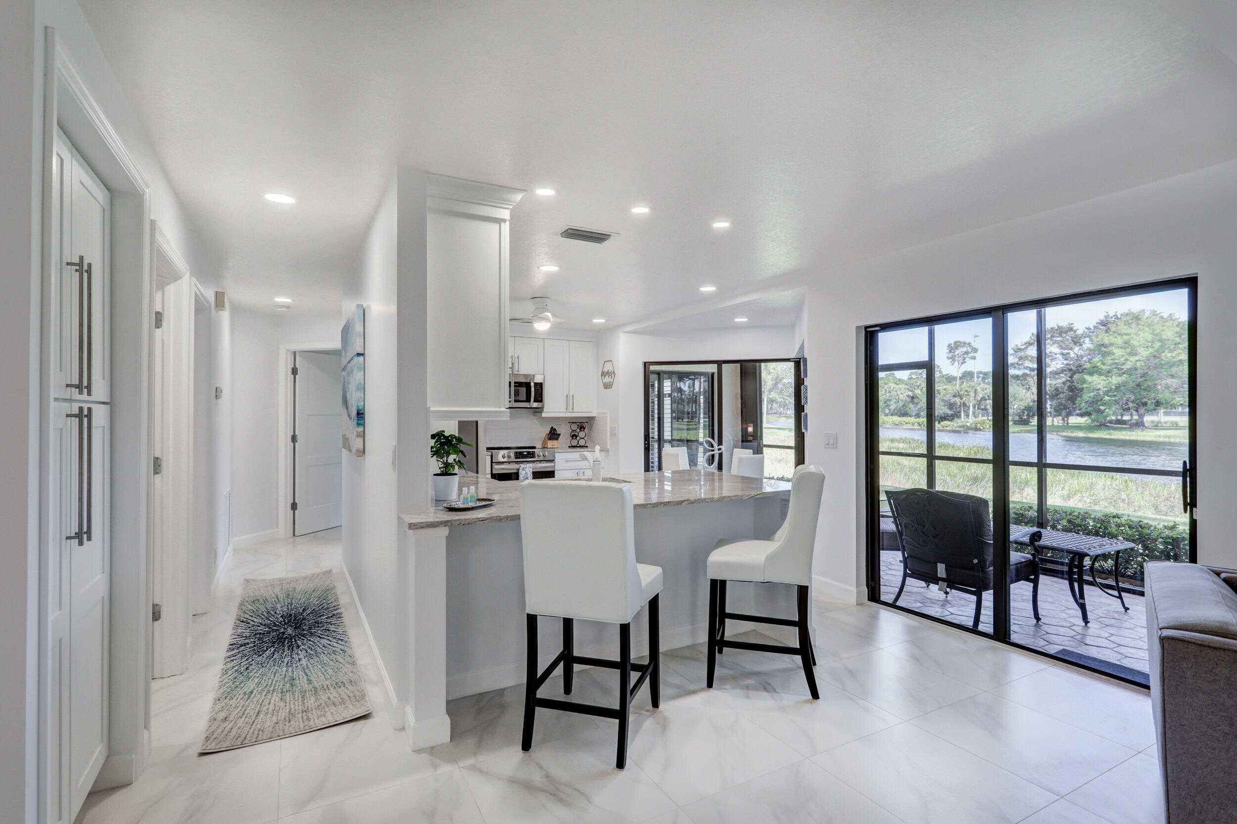 DescriptionStep into refined comfort with this beautifully furnished and fully renovated 2 bedroom, 2 bath residence in the prestigious PGA National community. Thoughtfully designed with modern finishes and sophisticated details, this home includes a private 1 car garage and a serene screened patio offering sweeping lake viewsan ideal backdrop for morning coffee or evening cocktails. Every element has been curated for convenience and style, making this property truly turnkey. The open layout blends effortlessly with upscale furnishings, creating a warm yet elegant atmosphere. Perfectly situated across from the sparkling pool and the lush PGA National Park, you'll enjoy resort style amenities right outside your door